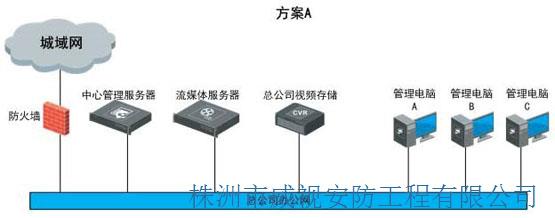 根據店鋪現場實際情況,方案需使用現有的網絡資源,同時借用ADSL線路和公司網絡進行網絡數據傳輸,實現各級網絡監控系統的全部功能。監控方案需在總公司設置總監控中心,使之成為一個網絡監控站,可隨意調看系統中任一店鋪的任一畫面。