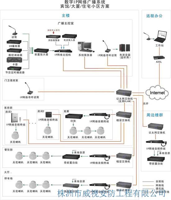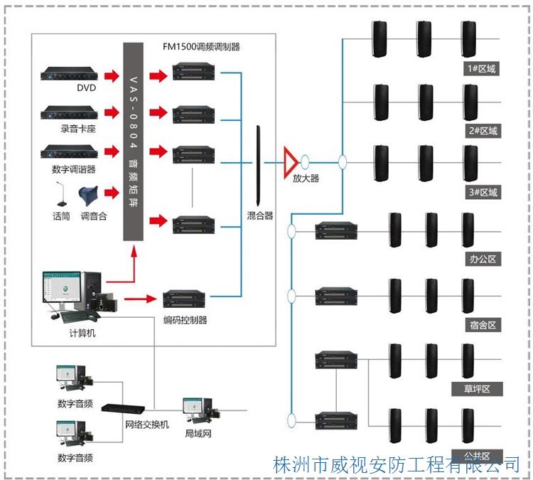 公共廣播系統是在有限范圍內為公眾服務的廣播。在常規情況下,公共廣播信號通過布設在廣播服務區的廣播線路傳輸,是一種單向的有線廣播。用于發布內部信息、發布作息信號、提供背景音樂以及用于尋呼和強行插入災害性事故緊急廣播等。