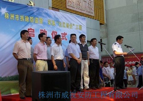 2009年7月20號正式實施社區創安工程建設項目作為株洲市“數字株洲”的重要一級,涉及到株洲市、株洲縣主次干道2500多棟房屋、30000多居民住戶、59000多個窗戶、約30多萬平方米防盜窗拆除后的新裝,全部由本公司承接安裝,及其后期剪網重裝維護,全部由本公司承接。
